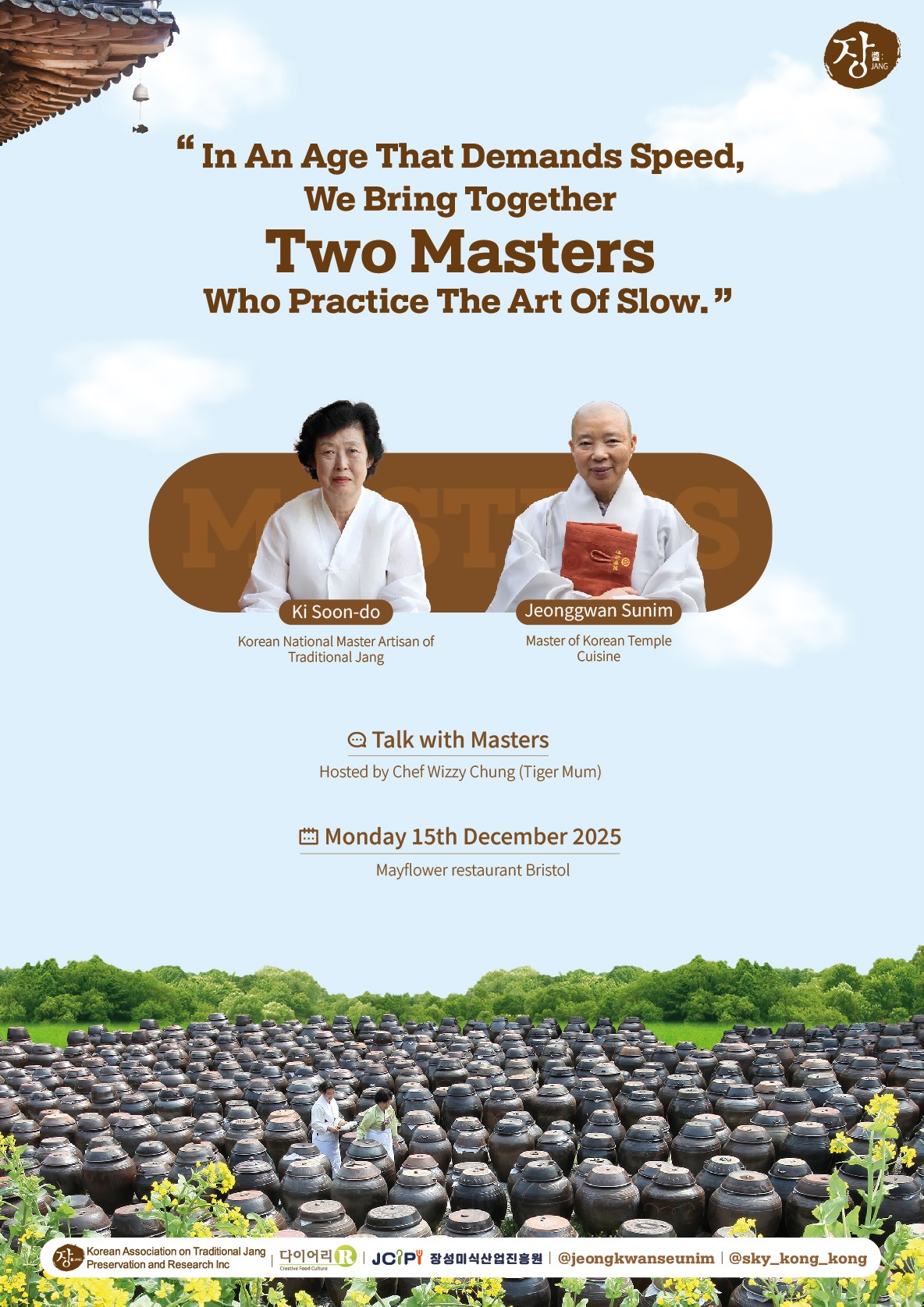 오는 15일 영국 브리스톨에서는 한식 기반의 영감을 요리로 표현하는 셰프와 두 전승자(기순도 명인·정관스님)가 협업한 팝업 행사가 열린다. Wizzy Chung 총괄 셰프는 브리스톨 현지에서 레스토랑 ‘스카이콩콩(Sky Kong Kong)’을 운영하며 한식에 기반을 둔 지역성과 예술적 감각을 결합한 요리 철학으로 주목받고 있으며, 본 행사를 통해 한국 발효 문화의 현대적 해석과 창작적 조리 방식을 결합하는 전통과 미식의 협업 모델을 제시한다.