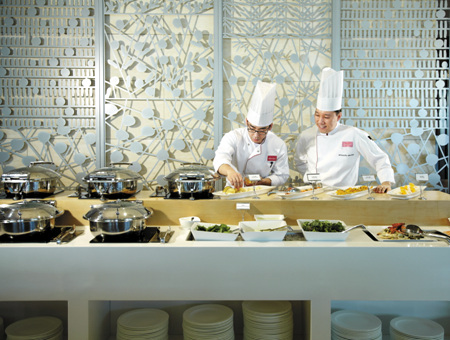 맛과 건강뿐 아니라 오감을 만족시키는 즐거움도 색다르다. 머큐어 홈메이드 샐러드 뷔페는 셰프가 즉석에서 스테이크나 샌드위치 등을 조리하는 라이브스테이션이 마련되어 자세하고 정확한 조리과정과 재료의 신선함을 보는 즐거움이 가득하다. 천연 재료를 사용해 세프가 즉석에서 만들어주는 달콤한 셔벳 디저트도 추가요금과 함께 이용가능하다. 또한 즐거운 식사를 위해 매일 새로운 음악을 제공합니다.
