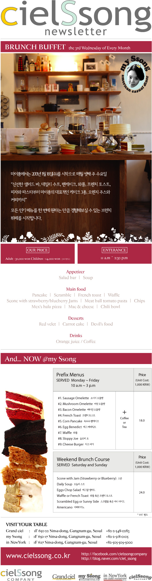[cielssong] '매월 3째 주 마이쏭에서 만나는 brunch buffet'