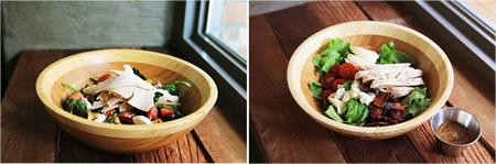 (좌) 터키 스피니치 샐러드, (우) 닭가슴살이 들어간 콥 샐러드