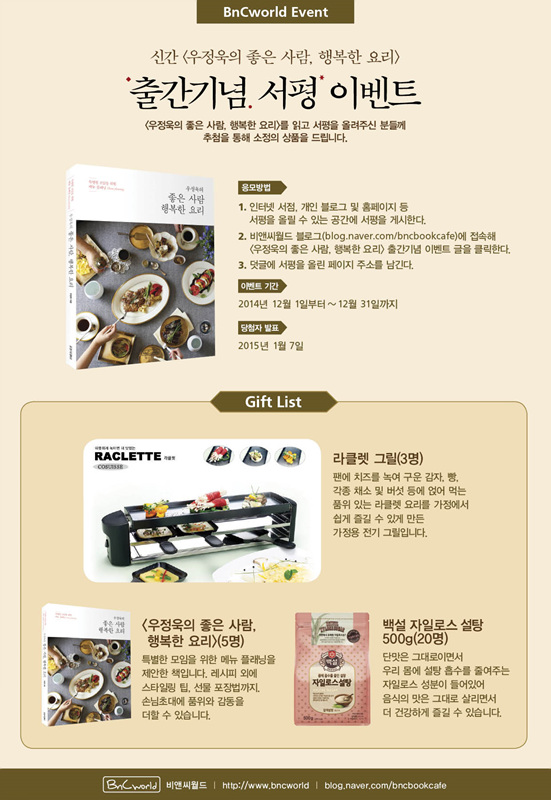 <우정욱의 좋은 사람, 행복한 요리>출간기념 이벤트 글을 클릭한다.