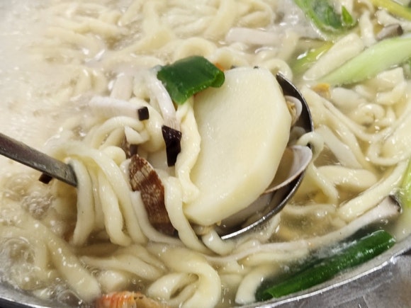 특히 겨울이면 김치 칼국수를 자주 끓여 주셨는데, 젖은 칼국수 면을 사 오는 건 언제나 내 몫이었다. 신문지에 둘둘 말아주는 면은 축축해 금세 늘어졌고 잘못 들면 신문지가 찢어질까 조심스레 안고 오곤 했다. 손에 들린 면 덩어리에서 덧가루인 밀가루가 툭툭 떨어지던 기억이 아직도 생생하다.