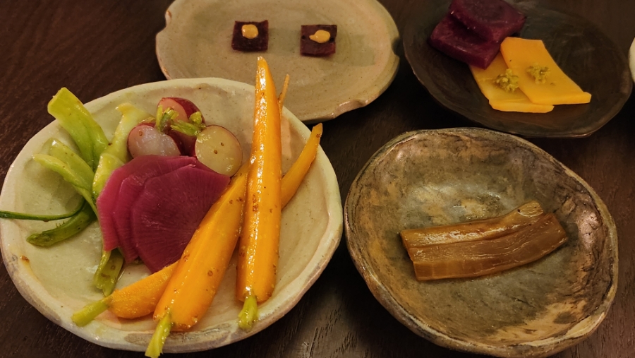 오픈한 지 한 달 남짓한 파리의 신상 맛집이지만, 셰프 이수는 이미 식당 ‘JIP’에서 창작 한식으로 실력을 인정받은 인물이다. 벌써 만석 행진이 이어진다. 그의 음식은 마치 예술가의 창작물 같다. 셰프는 주기적으로 한국 천진암을 찾아 정관 스님께 요리 기술뿐 아니라 정신적 수양까지 배우는 열성파다. 가메이(Gamay) 품종으로 만든 내추럴 와인을 마시다 보면, 육포처럼 말린 고구마, 누룽지 수프, 대담한 채소 구이, 호박만으로 만든 국수, 무떡 등이 차례로 등장한다. 인도네시아 삼발 소스부터 아시아 갈랑가까지, 응용의 폭이 무한하다. 한식의 경계를 훌쩍 넘어선, 진정한 ‘Esu 스타일’이 만들어지고 있다.
