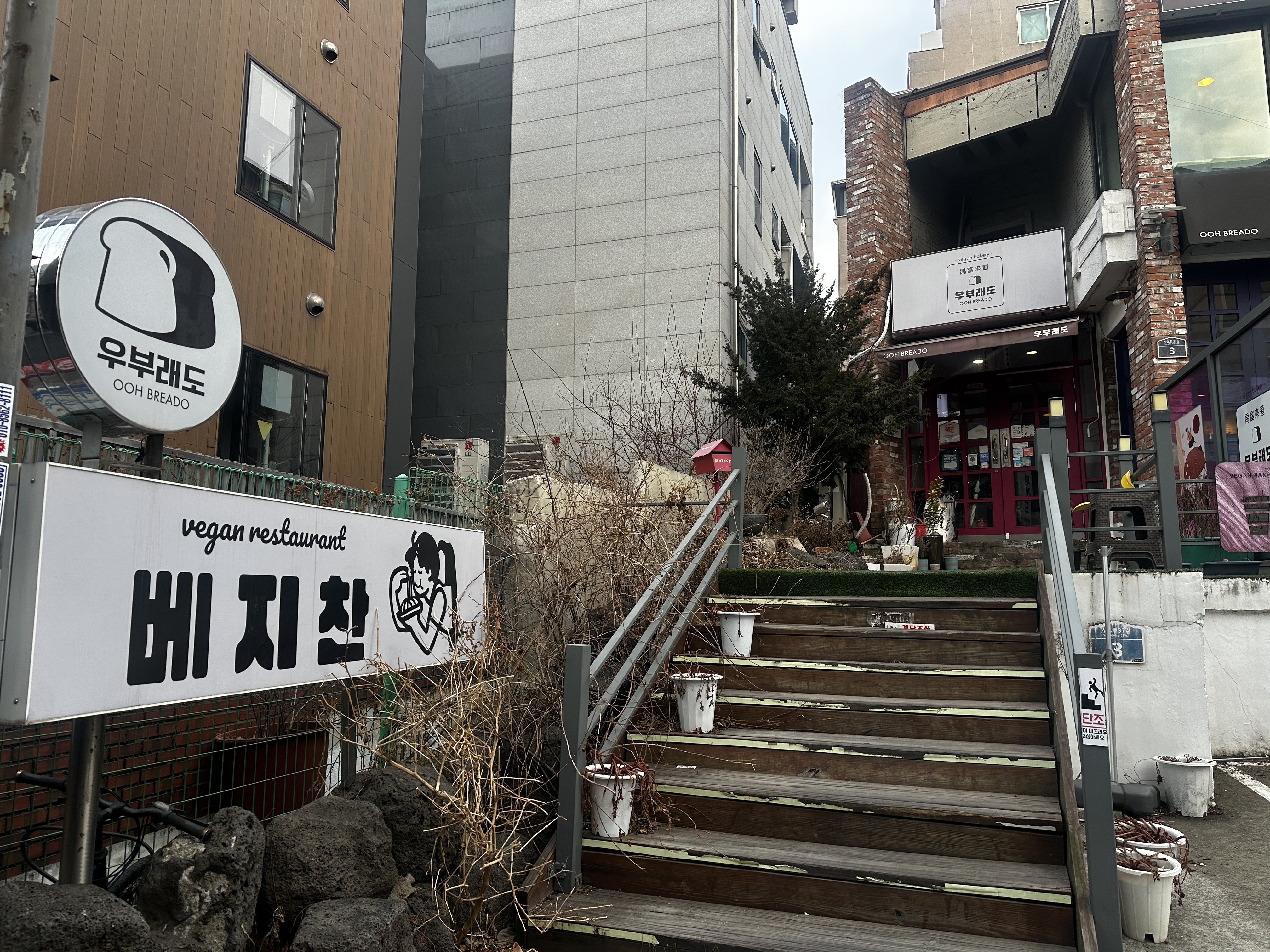 건물 2층에 자리 잡은 '베지찬'은 우부래도에서 구입한 빵과 음료를 즐길 수 있고 비건 브런치도경험할 수 있는 공간이다. 추구하는 방향성은 비건 메뉴임을 일반인도 느낄 수 없을 맛을 선사하는 것이다. ‘비건 치킨 당근 라페 샐러드’, ‘귀리 크림 로제 파스타’ 등 다양한 메뉴들을 선보이며 모든 소스를 직접 만들고 비건 메뉴라고 해서 요리를 단순화하지 않는 것이 특징이다.