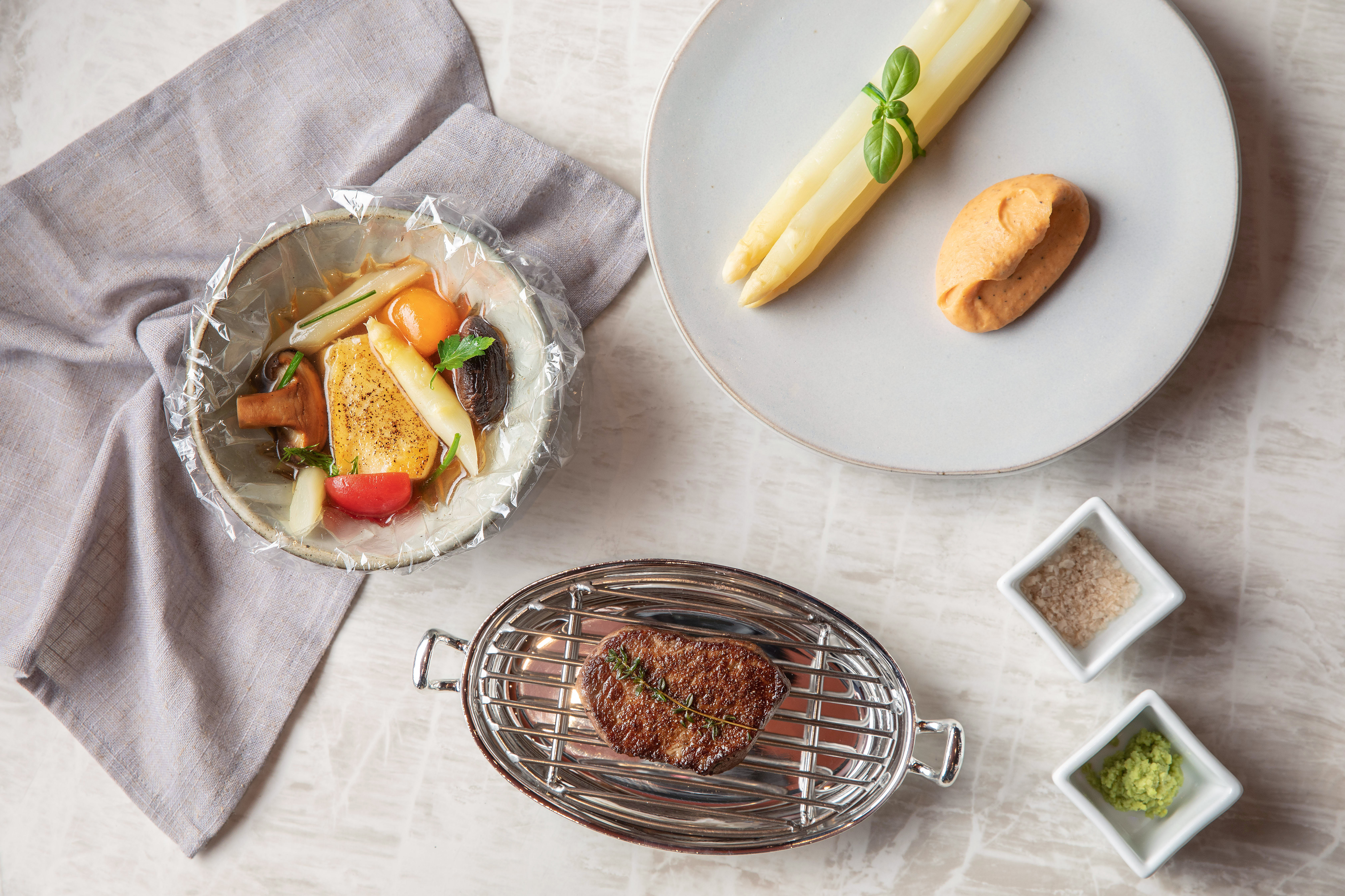 [그랜드 하얏트 서울 호텔, 2021년 4월 26일] 그랜드 하얏트 서울 호텔의 미식 골목 322 소월로 내 ‘스테이크 하우스’와 ‘테판’은 제철 채소인 아스파라거스를 이용한 스페셜 세트 메뉴를 4월 27일부터 5월 9일까지 선보인다.