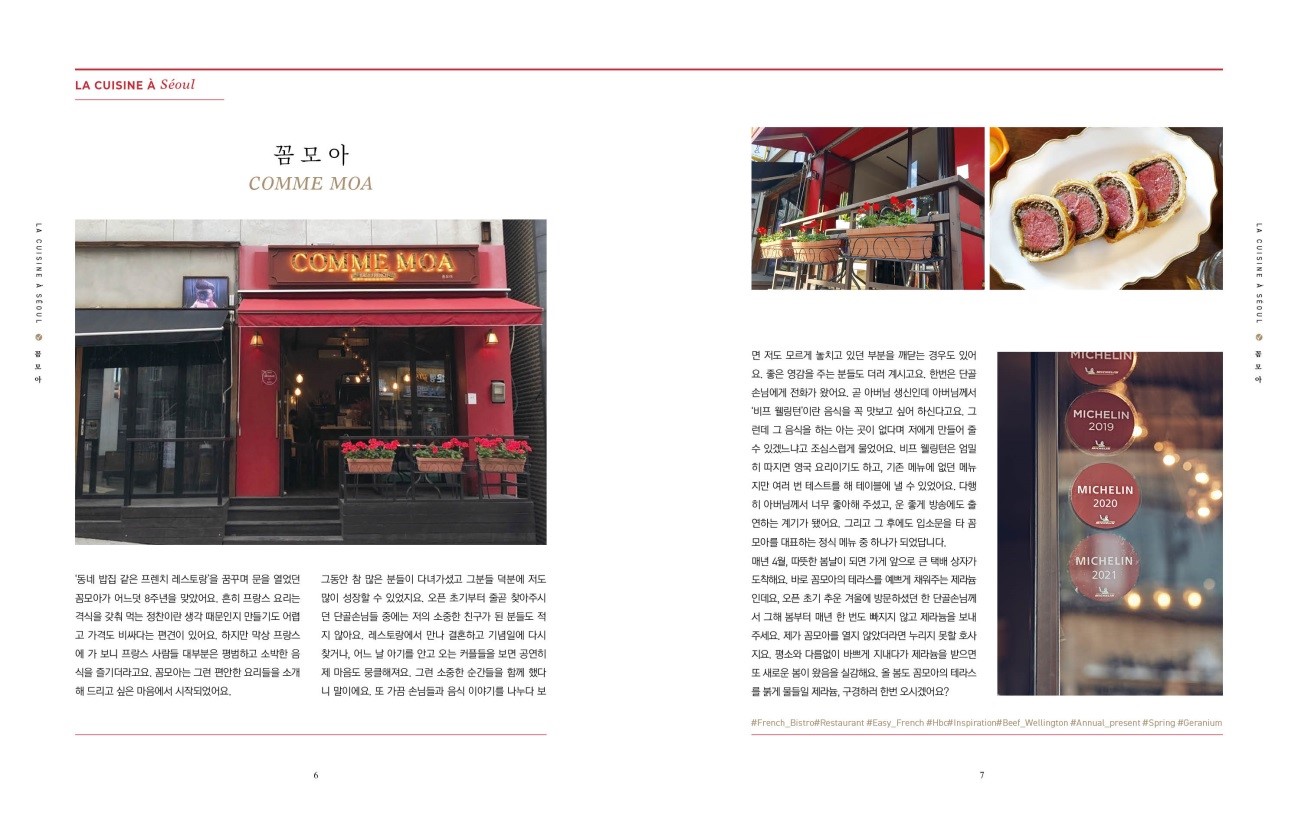 10년간의 유학생활과 셰프 경력을 발판으로 2014년, 해방촌 한 자락에 누구나 쉽고 친근하게 프랑스 요리를 즐기길 바라는 마음으로 프렌치 비스트로 꼼모아(Comme Moa)를 오픈했다.
