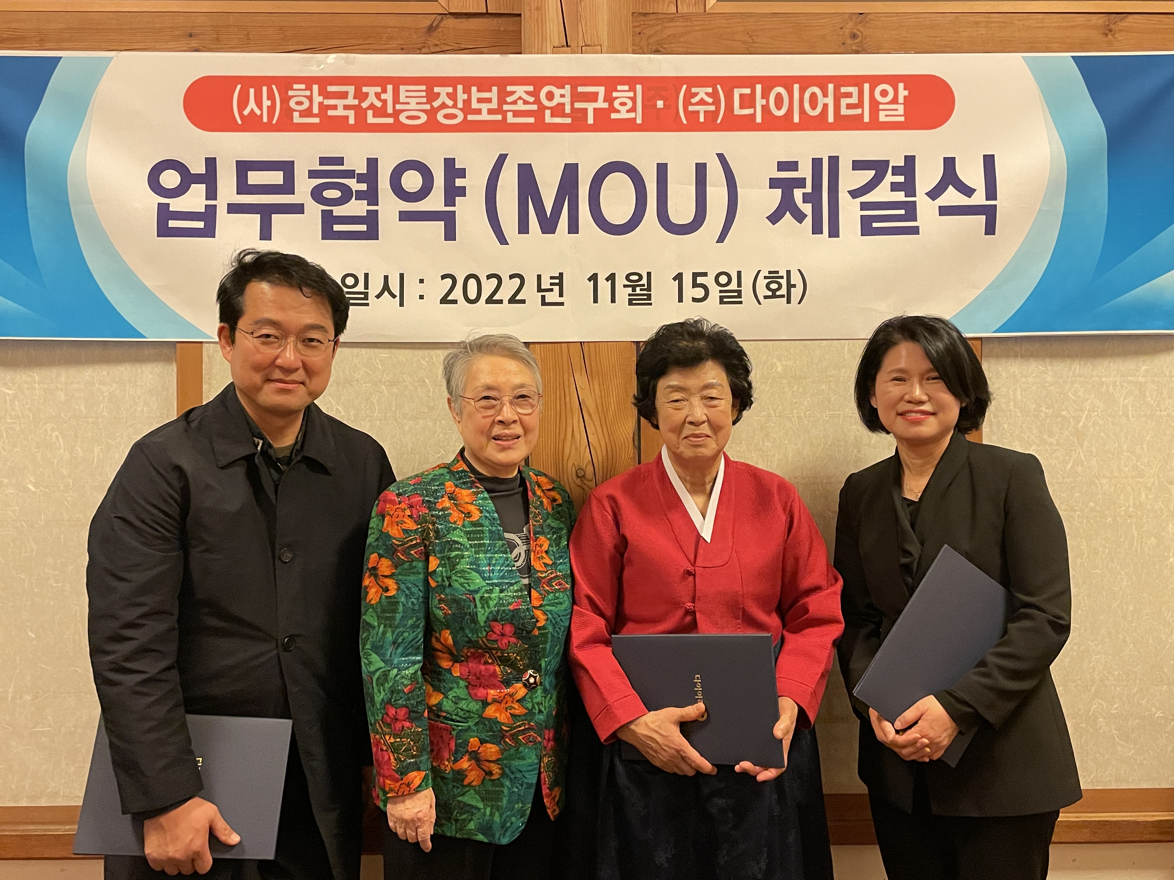 이번 협약식에는 (사)한국전통장보존연구회의 기순도이사장, 농(주)고려전통식품의 고훈국대표, (주)다이어리알 이윤화대표, 북촌음식문화연구원 이종미원장이 참석했다.