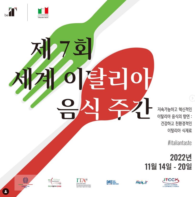 11 월은 이탈리아 음식 주간의 달이다. 올해도 변함없이 11 월의 셋째 주, 세계 이탈리아 음식 주간이 진행된다. 2016 년 처음 시작된 세계 이탈리아 음식 주간은 전 세계에 이탈리아 음식을 소개하고 이탈리아 식문화의 우수성을 알리기 위해 기획된 행사로, 식량 안보와 건강한 식품을 주제로 개최되었던 2015 년 밀라노 엑스포의 소중한 성과다.