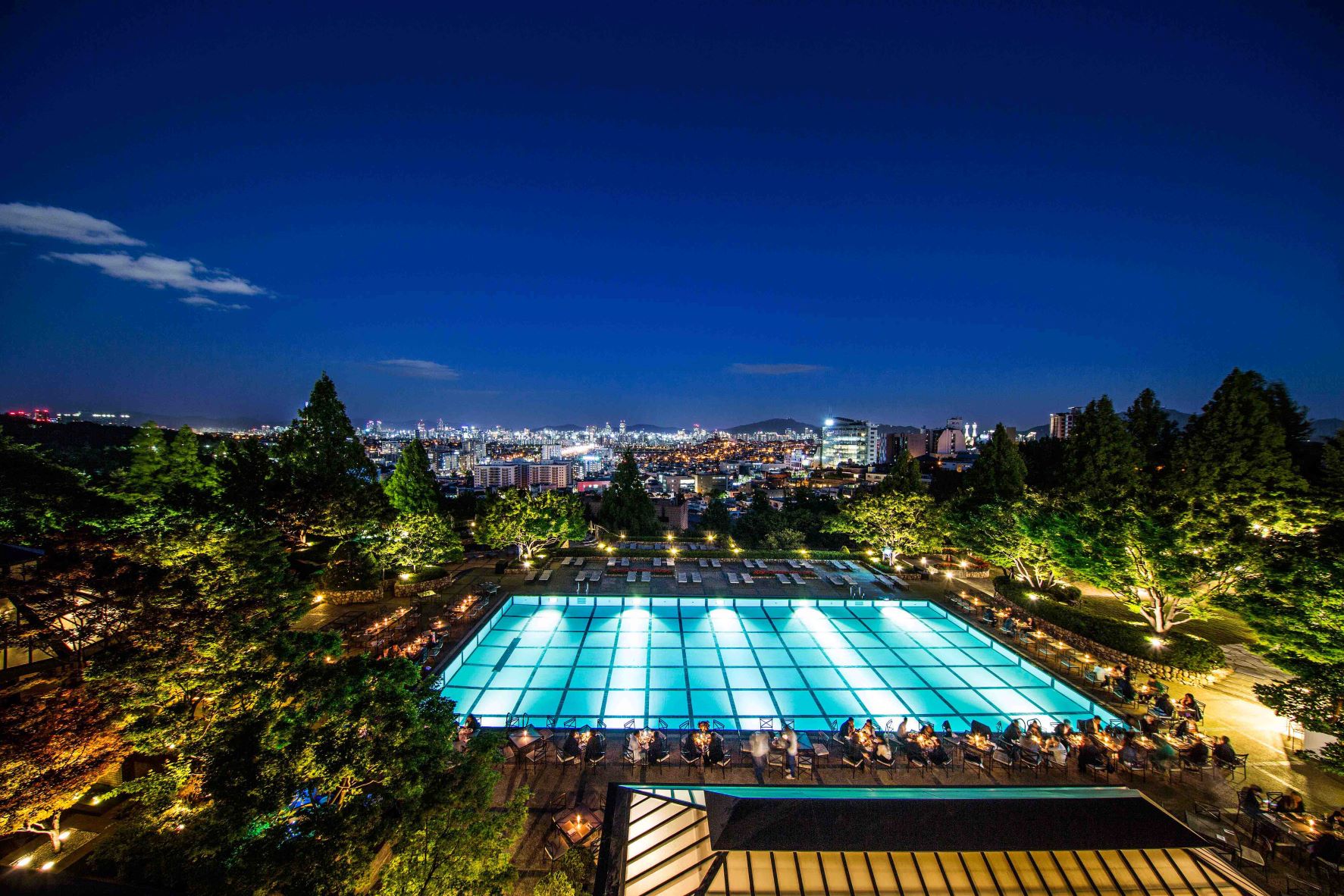 아름다운 에메랄드빛 야외 수영장에서 경험하는 도심 속 힐링