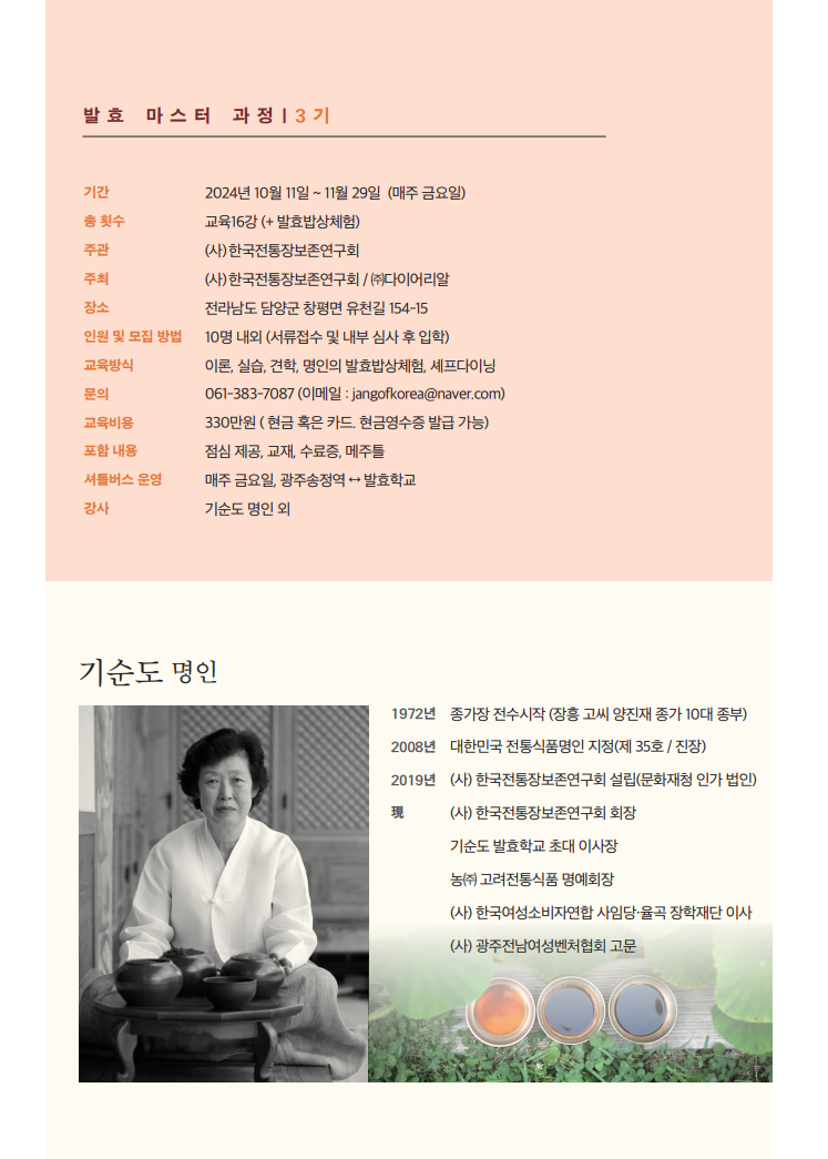 '기순도 발효학교 발효마스터 과정‘ 3기 모집