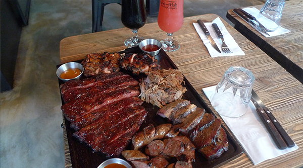 점심에는 바비큐가 들어간 샌드위치와 바비큐 립플래터를 주력으로 판매하고 저녁에는 본격적으로 바비큐를 판매한다.