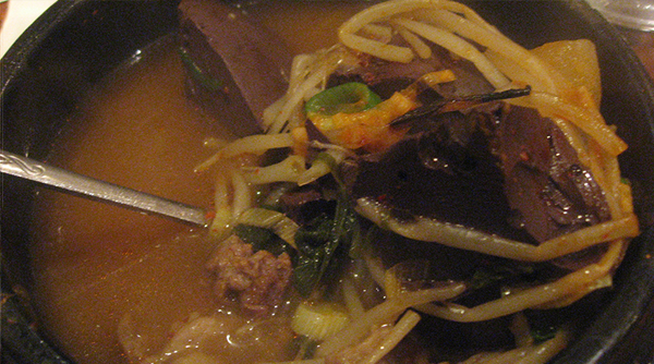 25시간 우린 육수에 선지, 소양지, 소내장, 우거지 등을 넣어 끓이기에 구수하고 진한 맛이 좋아 주당들이 많이 찾는다.