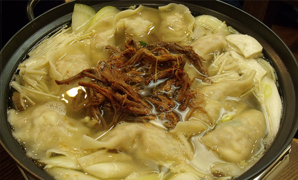 배추, 숙주, 고기 등이 꽉 찬 만두와 진하면서 깔끔한 국물 맛이 조화롭다.