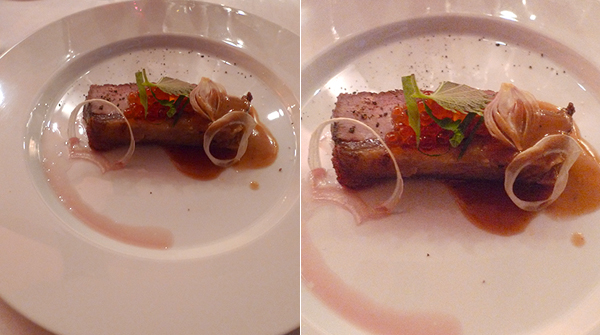 오븐에 통으로 구운 최상급 송아지 등심과 연어알 절임