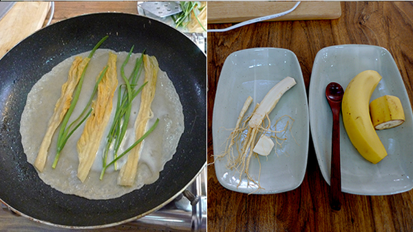 다양한 체험 프로그램 중 메밀전과 인삼요구르트 만드는 체험을 했다.
