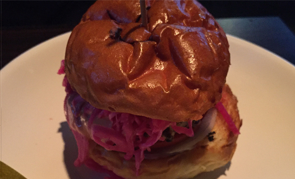 인기 메뉴인 블루치즈버거는 꼬릿한 향의 고르곤졸라 위에 향긋한 루콜라와 무화과잼이 들어간다.