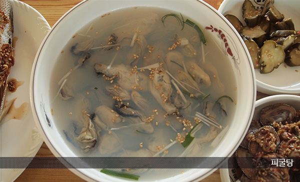 한겨울에 시원하게 먹는 굴껍데기를 끓여 만든 차가운 굴국.