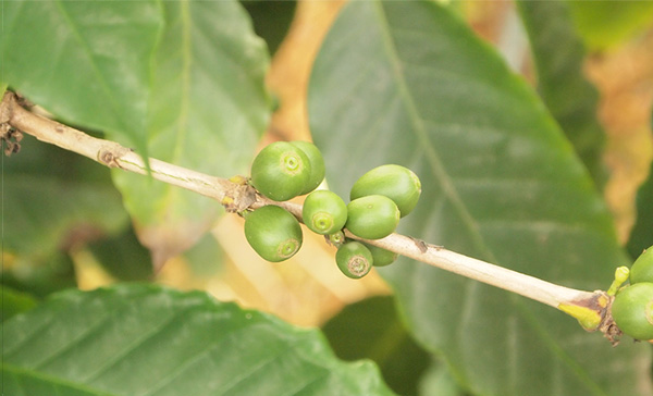 비닐하우스 안에서 무럭무럭 자라나는 커피나무들이 열매를 맺고 있다.