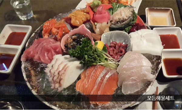 광어, 연어, 참치에 제철 사시미가 메인이며 사이드로 멍게, 개불, 해삼이 나온다.