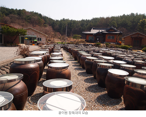 광이원에 들어서면 천여 개가 넘는 여러 모양의 항아리가 그득한 장독대가 있다. 처음 항아리 열 개로 시작했다는 것이 믿기지 않는다.