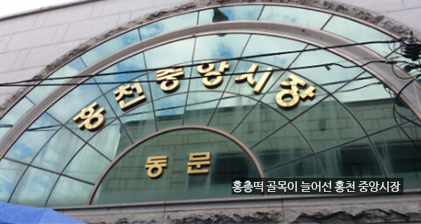 홍천 중앙시장 내에는 메밀부침개인 메밀총떡 가게가 많다. 보라색, 빨간색 등 집집마다 고유 컬러를 지정하고 상호를 써서 제각기 자기 집을 자랑하고 있다.
