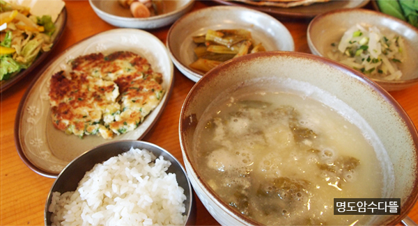 어느 것을 시켜도 싱싱한 갯것의 재료가 받쳐주고 있다. 이는 해녀 친구들이 좋은 갯것의 산물을 공급해줌에 틀림없다. 성게국, 갈치국도 맛볼만 하다.