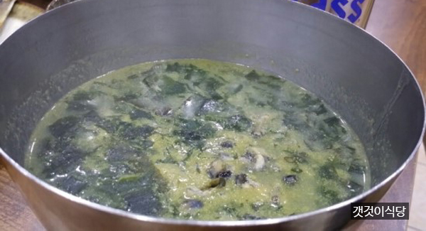 그 전에 보말을 그냥 삶아먹곤 했는데 해녀출신 한복순사장은 보말을 미역과 함께 끓이고 메밀가루를 약간 풀어 시원한 국물 맛을 냈다.