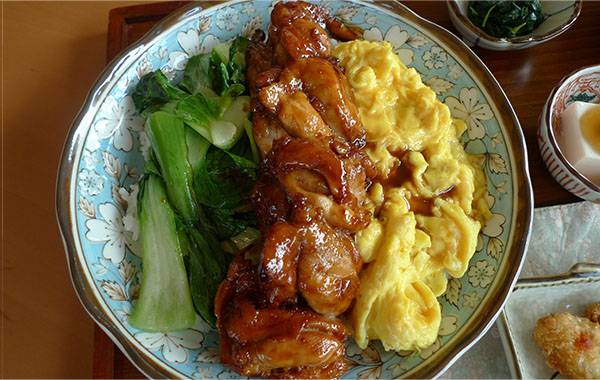 따끈한 밥 한 숟갈에 부들부들한 계란, 짭쪼름한 닭다리살, 아삭아삭한 식감의 청경채의 조화가 훌륭하다.