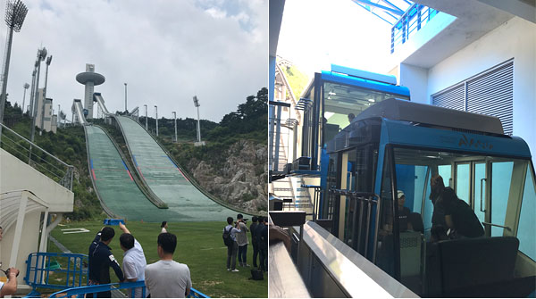 30분 단위로 운영되는 모노레일을 타고 올라가면 스키점프대와 전망라운지를 관람할 수 있다.
