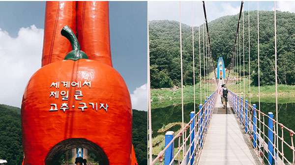 다리 한가운데 세계에서 제일 큰 고추와 구기자를 볼 수 있는데(높이 16m) 고추와 구기자는 청양의 대표 특산물이기도 하다.