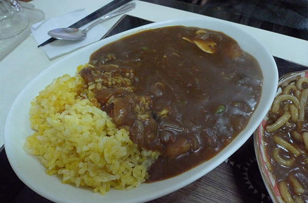 밥 대신 우동 면이 들어 있는 카레우동은 언뜻 보기에 자장면 같기도 하다.