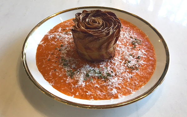 얇게 썬 감자를 마치 장미 꽃잎처럼 하나하나 장미꽃 모양으로 말아서 오븐에 굽고 튀기는 그라탕의 일종이다.