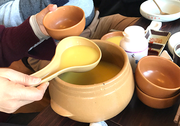 반찬으로 나오는 갓김치는 9년, 백김치는 5년, 김장김치는 3년 간 숙성해 맛이 담백하다.