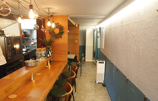 주택차고를 개조한 이 작은 공간은 몇 개의 테이블과 긴 바Bar 좌석이 전부다.