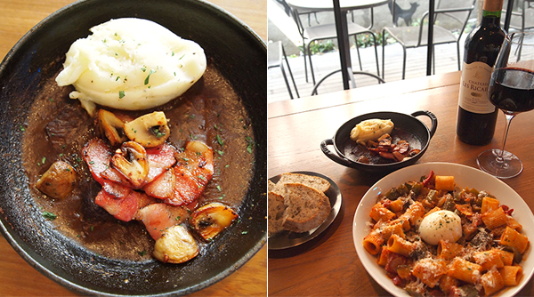 특유의 향을 입은 채 베이컨과 버섯, 메쉬 포테이토가 곁들여 나오는데 텁텁하지 않아 질리지 않게 먹기 좋다.