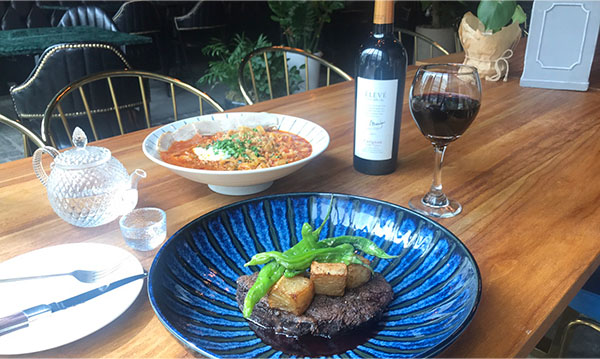 레드와인과 포도를 장시간 졸인 소스는 부드러운 스테이크와 잘 어우러진다.