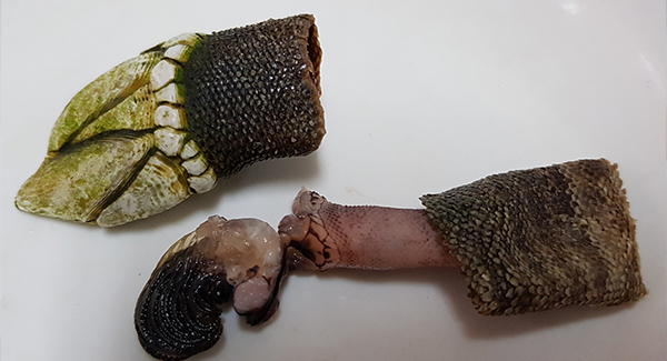거북손의 명칭은 여럿 있는데 울릉도 등지에서는 흔히 보찰(寶刹)이라고도 합니다.