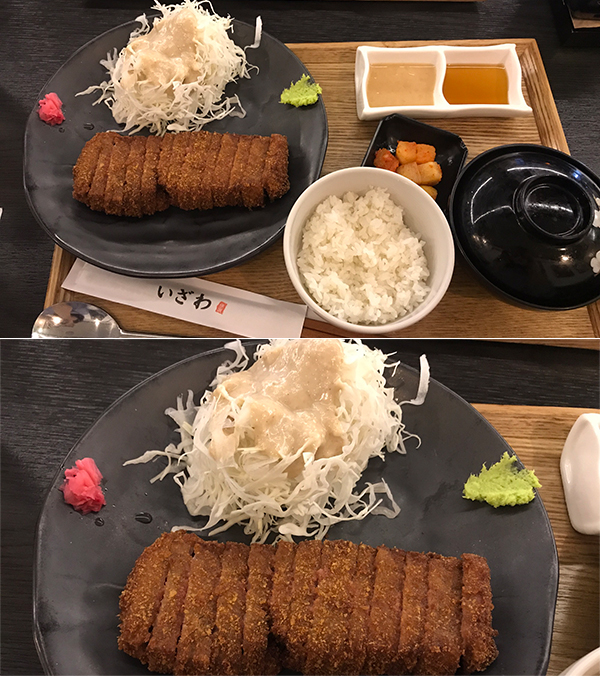 규카츠는 두툼하게 자른 소고기에 빵가루를 입혀 튀긴 것으로 이자와에서는 매일 정해진 수량만 들어오는 소고기를 사용해서 만든다.