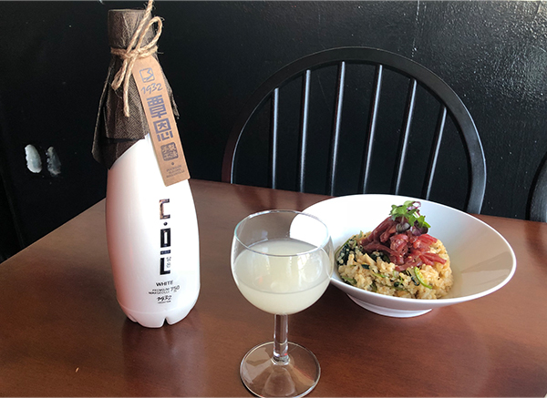 식전주인 사과 막걸리는 달큰한 향과 적절한 산미로 입맛을 돋워주는 역할을 하며 아담하고 투명한 칵테일 잔에 제공하는 센스가 돋보인다.