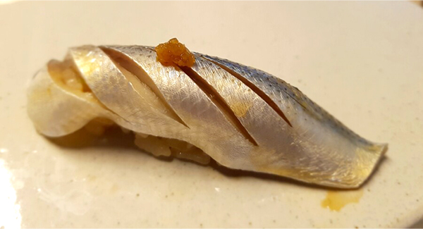 요즘처럼 쌀쌀한 바람이 부는 가을철에는 한창 맛이 오른 전어와 대표적인 등 푸른 생선인 정어리와 고등어를 소금과 식초에 염장하여 숙성한 초밥을 선보이는데 숙성 초밥의 호불호가 갈리는 요소를 최소화 하여 쉽게 접근할 수 있도록 하였다.