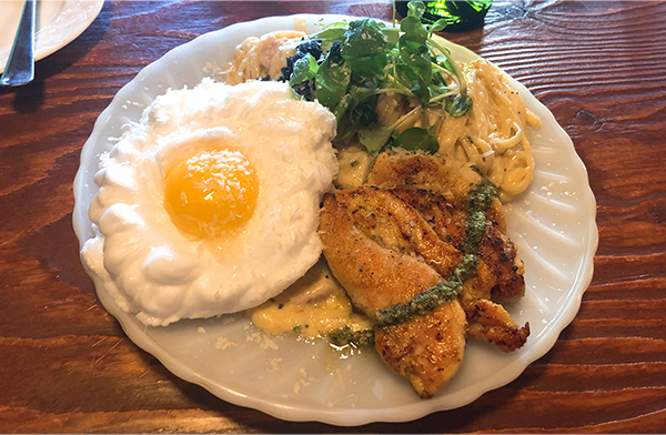 이곳의 시그니처인 구름파스타는 담백한 크림 파스타에 부드럽게 머랭을 친 계란 흰자를 구름처럼 올려 낸 이색적인 비주얼을 자랑한다.