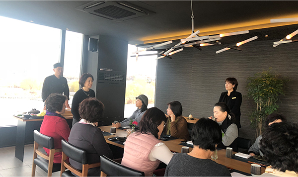 첫 번째 코스는 최고의 식재료로 정갈한 한식을 선보이는 “수라선”에서의 식사로 든든하게 시작하였다. 이날 진행을 맡은 ㈜다이어리알 이윤화 대표가 음식 관광에 참석한 경기도 향토 음식 연구회 분들에게 간단한 브리핑을 하며 진행 될 관광에 대한 기대를 고취시켰다.