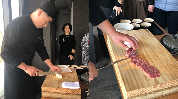 요팅 체험에 이어 더 리버 3층에 위치한 프라이빗 다이닝 “히로타(HIROTA)” 에서 주선용 셰프가 진행하는 쿠킹클래스에 참석하였다.