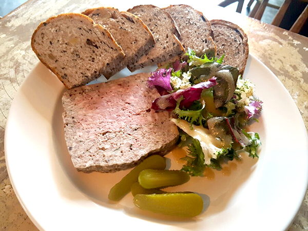 바로 ‘파테드캄파뉴(Pâté de campagne)’이다. 갈은 돼지고기에 닭 간(또는 돼지 간) 및 각종 허브, 견과류 등를 섞어 네모난 형태로 틀을 잡아 구운 뒤 식힌 시골풍 파테다.