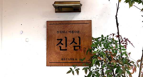 `진심’은 대충 먹고 싶지 않은 이의 혼밥을 책임지는 동네 밥집이기도 하며 가까운 사람과 한잔 술을 기울일 훌륭한 안주가 있는 선술집이기도, 편안하게 수다를 떨고 그 순간을 사진에 담을 가치가 있는 경험을 선사하는 공간이기도 하다.