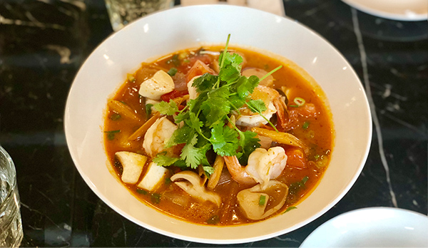 초고버섯을 비롯한 다양한 종류의 버섯과 신선하고 탱글한 통 새우, 태국 고추 등 다양한 땅과 바다의 재료가 국물의 맛을 한층 풍성하게 완성시켜 준다.