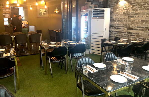 이곳은 원래 개인의 주택을 다이닝으로 개조해 만들어진 공간인데 바닥에 인조 잔디가 깔려 있는 홀 좌석은 날씨를 즐기기 좋은 시즌에 접어들면 천장을 오픈 하여 야외 테라스 석으로 변신하기도 한다.