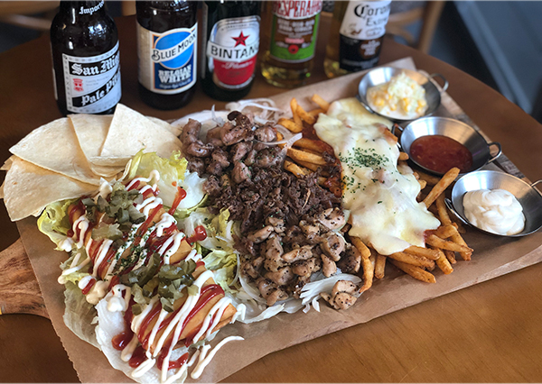 이 곳의 메뉴는 시원한 맥주 한잔을 할 때 자연스레 생각나는 음식으로 라인업 되어있다. 그 중푸짐한 양은 기본이며 여럿이 나누어 먹기 용이한 플래터 메뉴들이 이곳의 시그니처다. `까를로스 타코 플래터’는 이름처럼 멕시코 풍으로 풀어 낸 플래터 메뉴다. 커다란 도마 위에 올려진 음식들은 취향에 따라 다양한 조합이 가능하다.