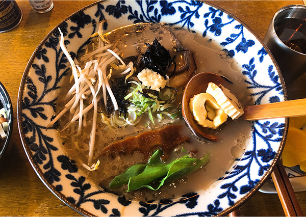 시그니처 돈코츠 라멘은 진하고 농도가 있는 육수에 얇게 제면 된 탱글한 면, 직화로 구워 낸 차슈, 달걀말이, 향신료의 향이 가득 밴 죽순 등이 푸짐하게 올려지며 양도 넉넉하다. 사이드 메뉴로 차슈 덮밥과 교자도 빼놓으면 아쉬운 메뉴다.