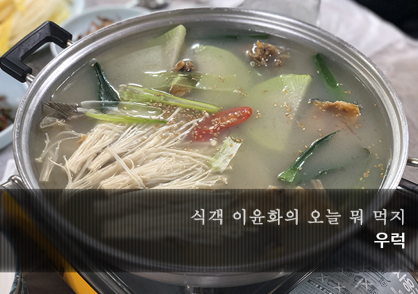 그 중 예상치 못한 가장 큰 감동으로 뇌리에 남아있는 것은 실한 회 한점보다 말린 우럭포탕 한 숟가락이었다. 소금 간해서 말린 우럭을 뚝뚝 잘라 무와 버섯, 파를 넣은 국물은 단순하다는 단어를 넘어서 어찌 보면 성의 없이 만든 전골 같아 보이기도 했다.